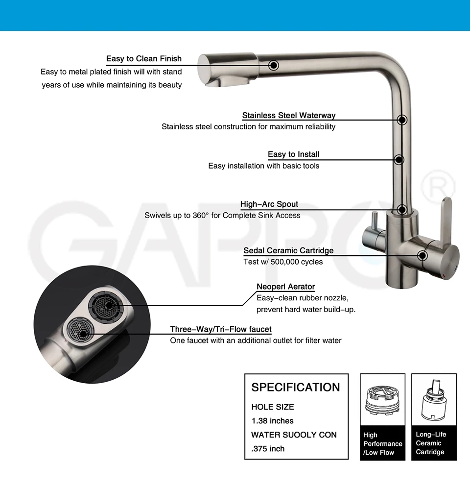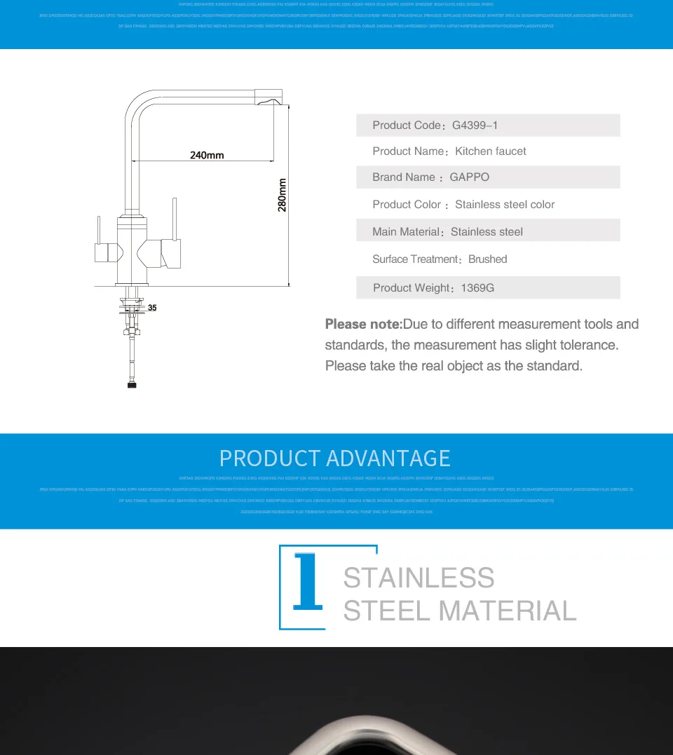GAPPO смеситель для кухни Смеситель для фильтра для воды из нержавеющей стали 304 Смеситель для кухни смесители для питьевой воды