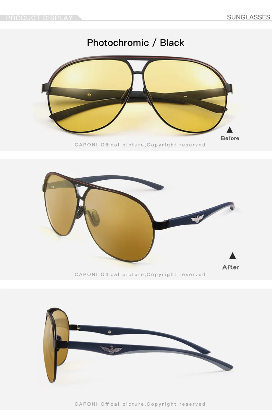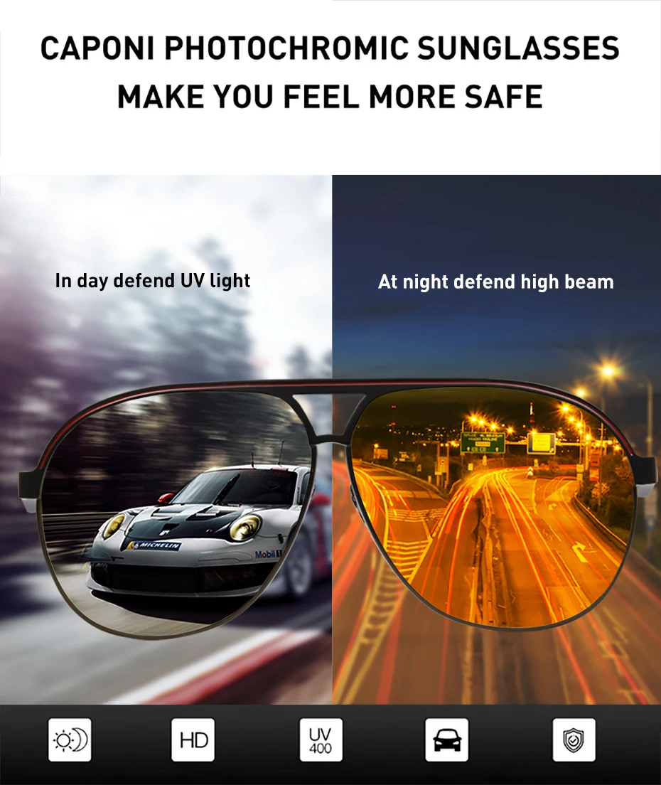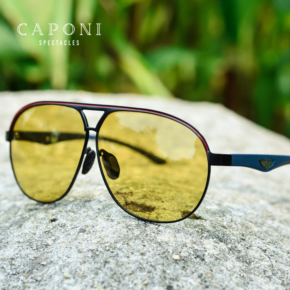 Солнцезащитные очки CAPONI BSYS8606 мужские, роскошные дизайнерские фотохромные модные Поляризационные солнечные очки для вождения, коричневые UV400