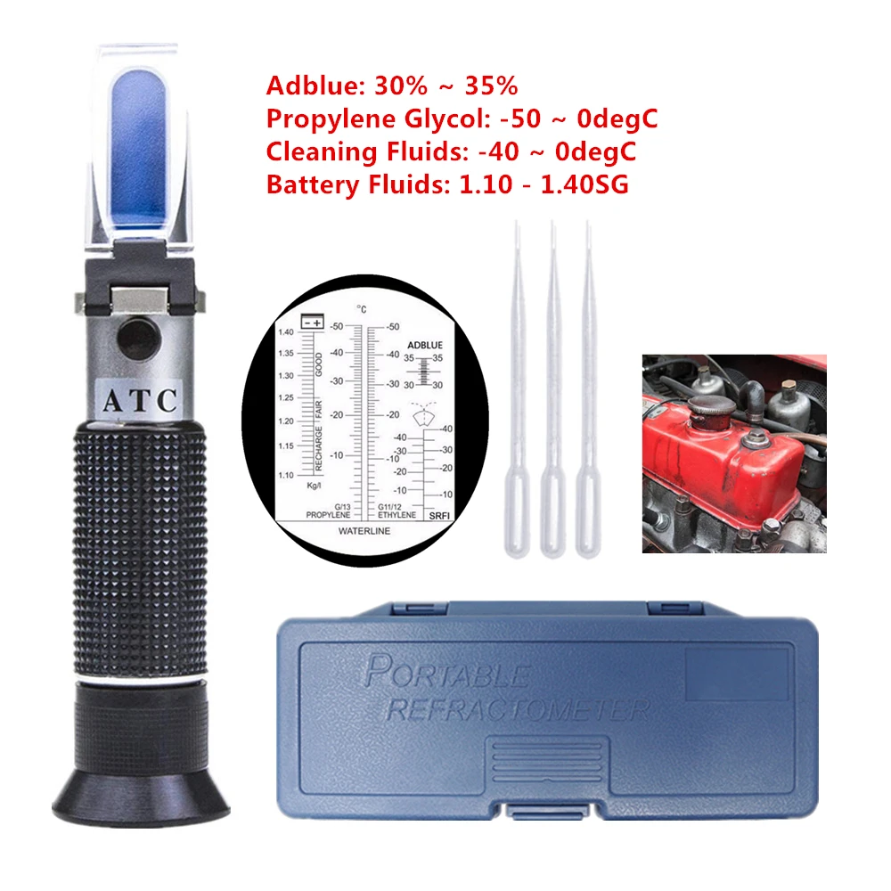 Ручной 4 в 1 тестер точки замерзания антифриза Adblue концентрация этилен-гликоль автомобильный аккумулятор рефрактометр с ATC