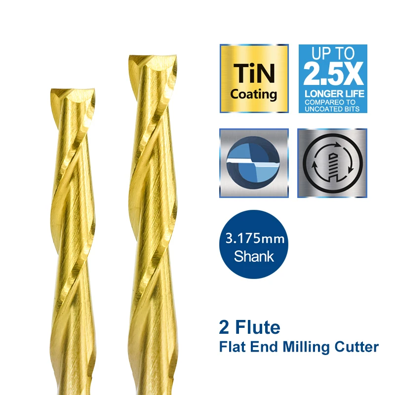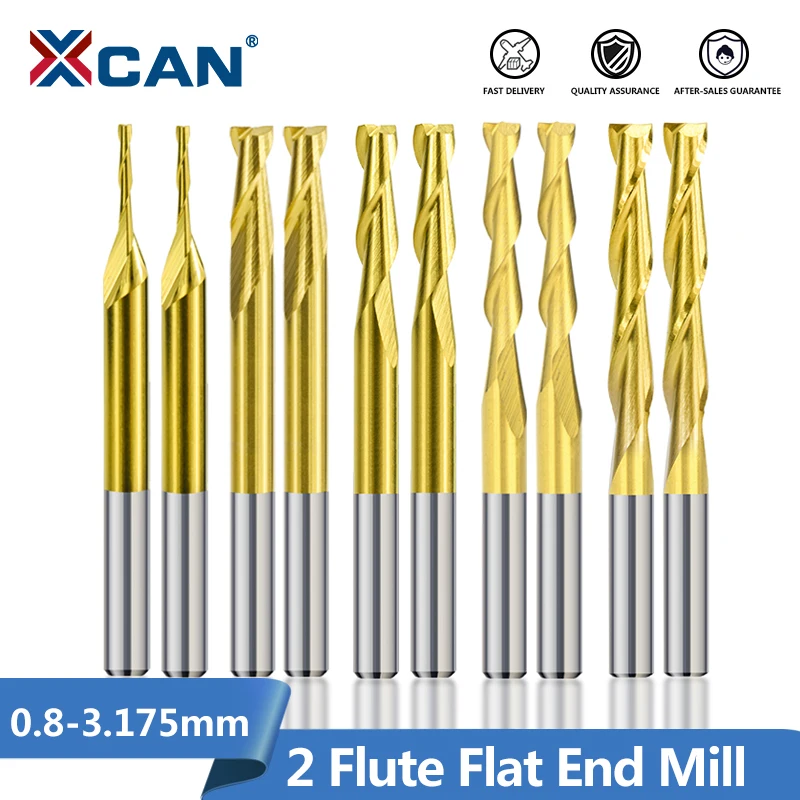Концевая фреза XCAN, с 2 канавками, с титановым покрытием, хвостовик 0,8 мм, 3,175-3,175 мм, 10 шт.