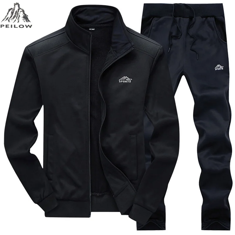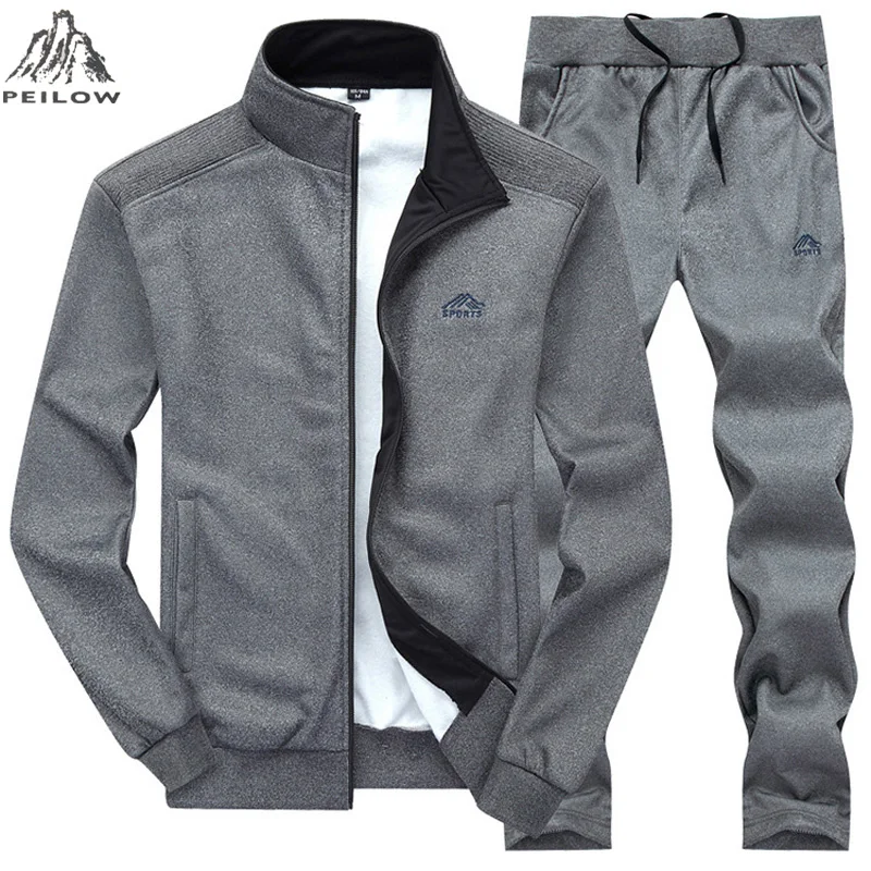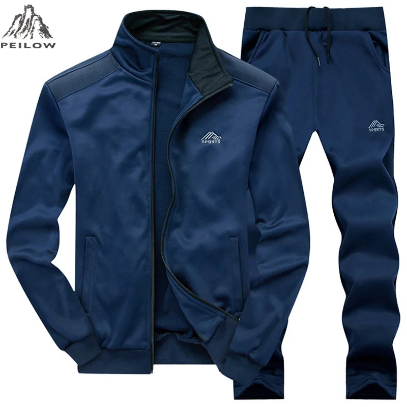 Peilow новая спортивная мужская повседневная Свитер с вышивкой спортивные костюм Стенд воротник сплошной цвет шить мужчины размер М-4XL