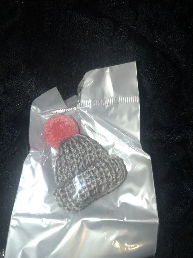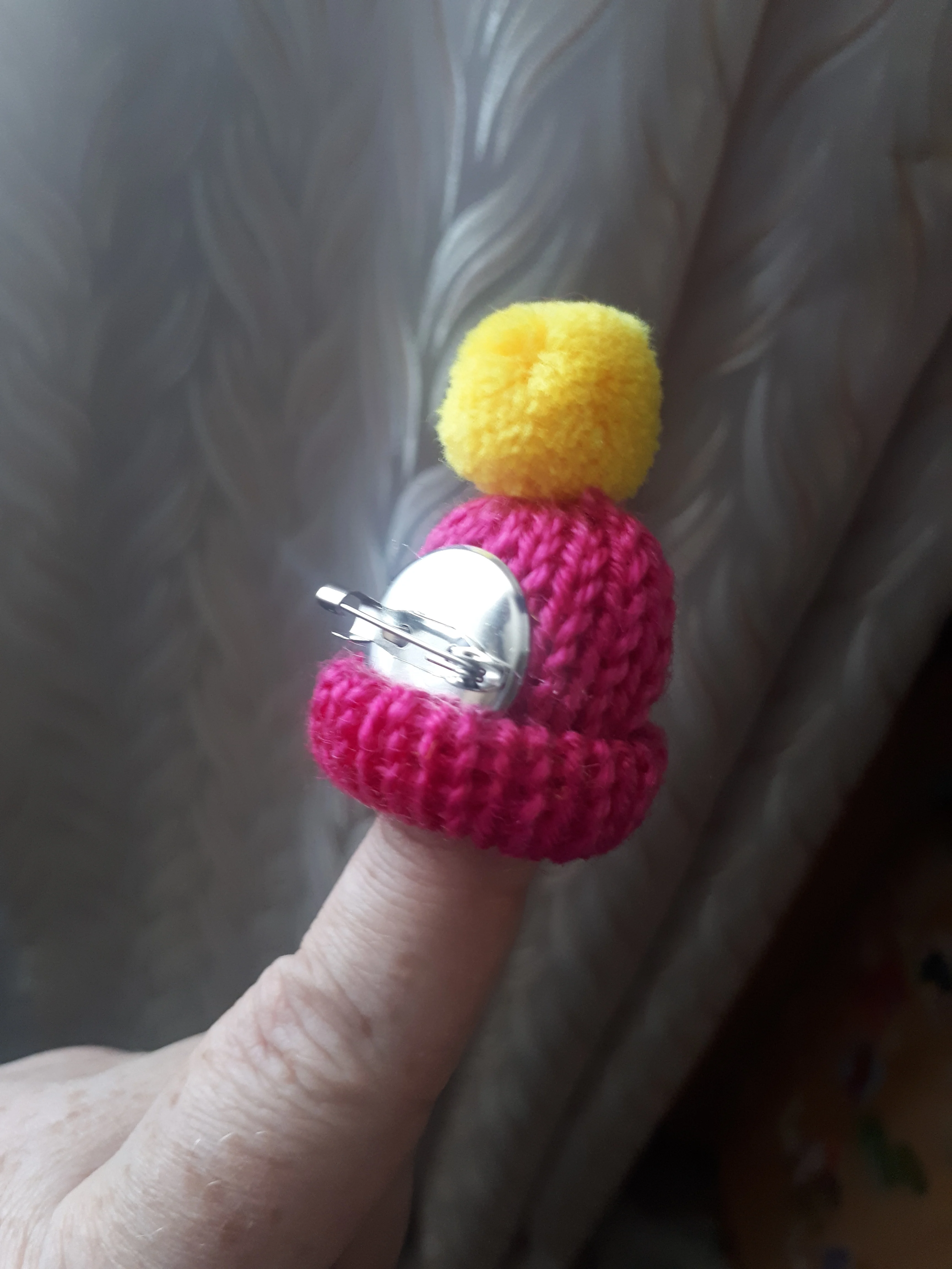 Отличная шапочка - оригинальный подарок,вязаная брошь. Спасибо.