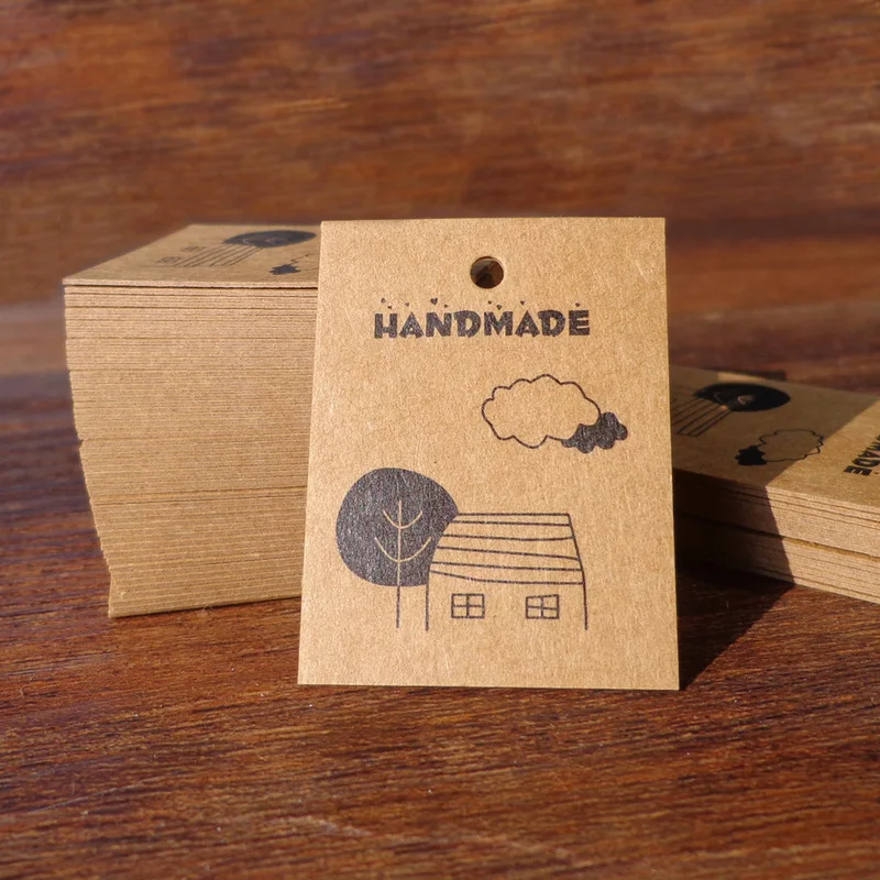 Винтажные крафтовые бумажные бирки для подарков-шарики ручной работы, бумажные мини-бирки для открытки из крафт-бумаги, 3 х4 см, 100 шт.