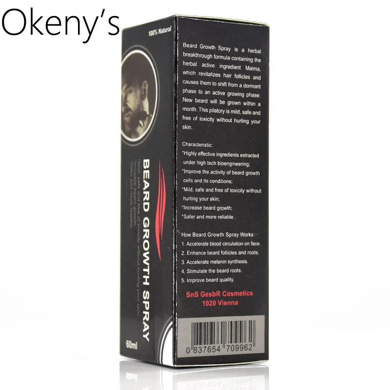 Выпадение волос Оригинальный спрей для роста бороды 60 мл стимулятор роста бороды 100% натуральный ускоритель роста бороды масло для роста волос на лице