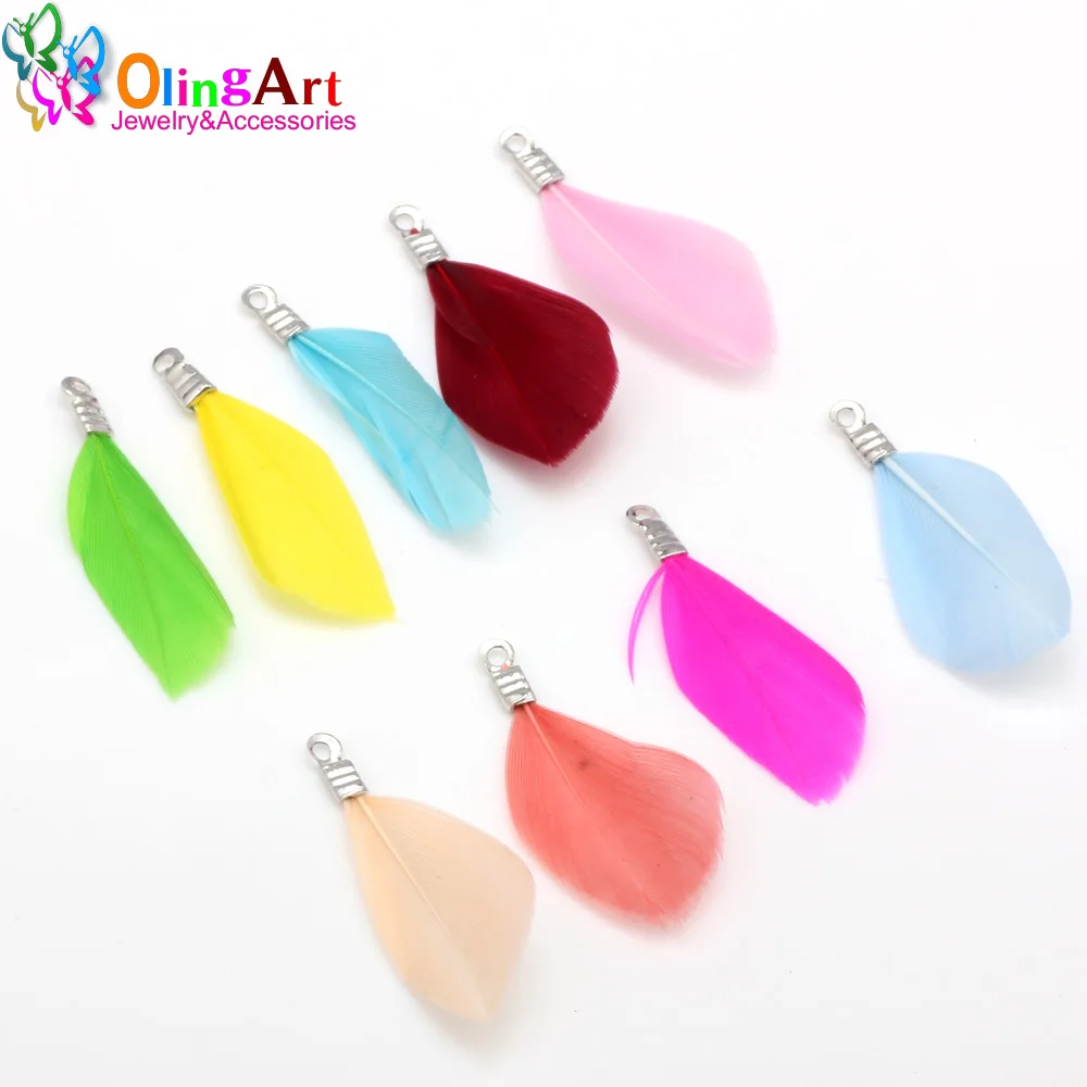 OlingArt натуральные перья 10 шт. красочные перья 3 см женское ожерелье-чокер Изготовление ювелирных изделий ремешки брелок Подвески