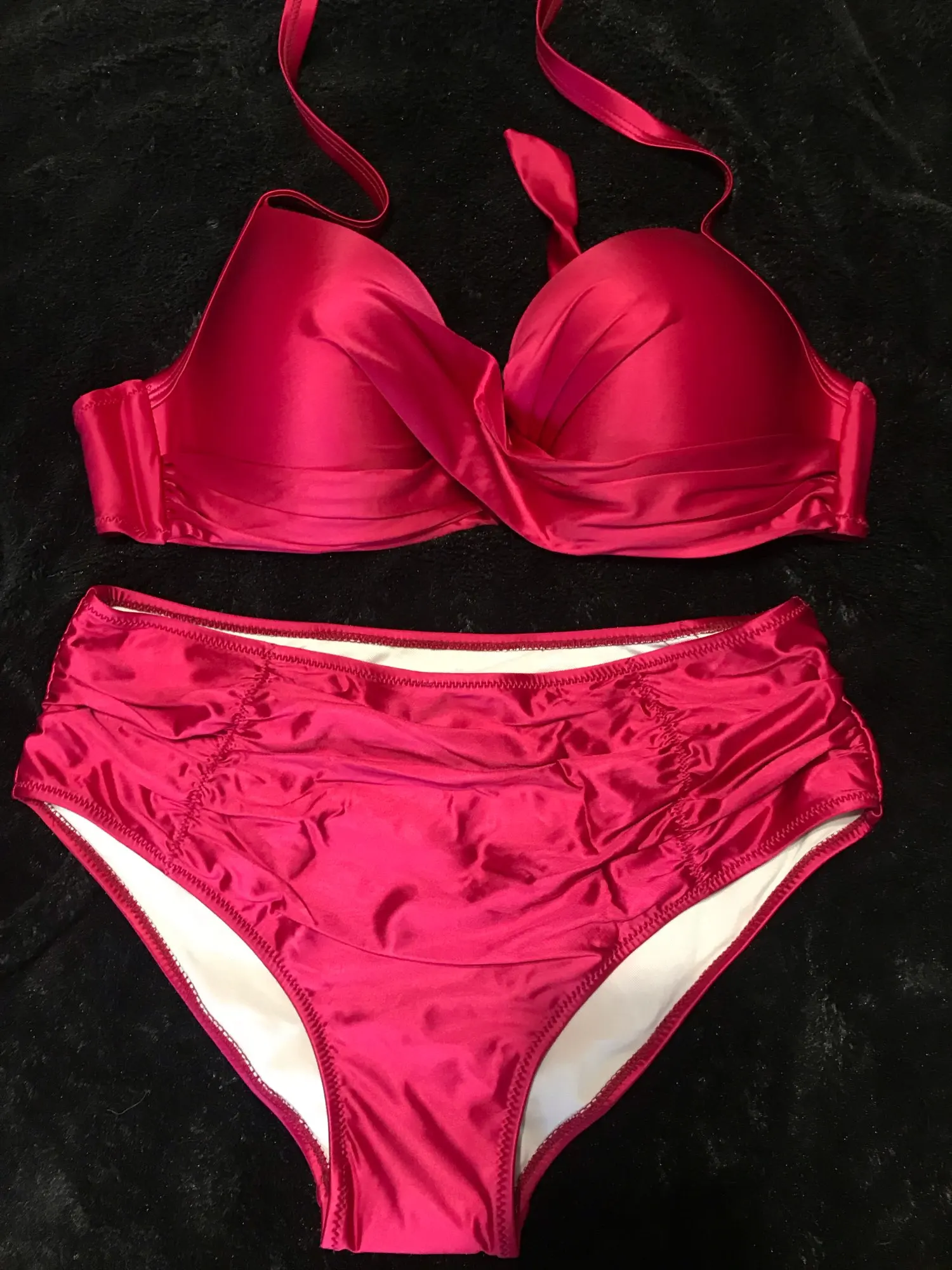 Это уже мой третий заказ именно этой модели купальника. Цвет очень красивый, особенно на загорелой коже. Ткань как атлас,смотрится богато. Сама модель очень удачная, плавки высокие, лиф хорошо держит грудь. Размер L хорошо сел на 46. Заказ пришел очень быстро. Ну и конечно же приятный бонус от продавца в виде сережек