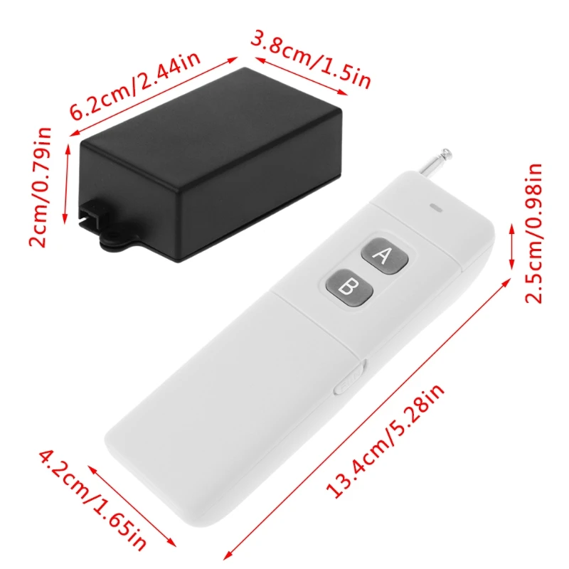 -Удерживайте нажатие одной кнопки, чтобы включить/включить. Ослабьте палец, чтобы остановить/выключить. (1 канальный переключатель (приемник) Требуется 1 кнопка дистанционного управления (передатчик).