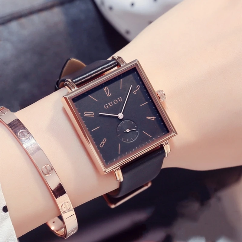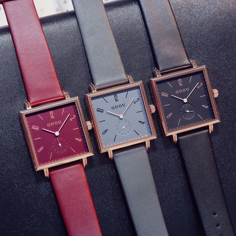 GUOU часы старинная Европейская леди квадратный водонепроницаемый пояс модный простой подходящий ко всему корейский модный стол для студентов