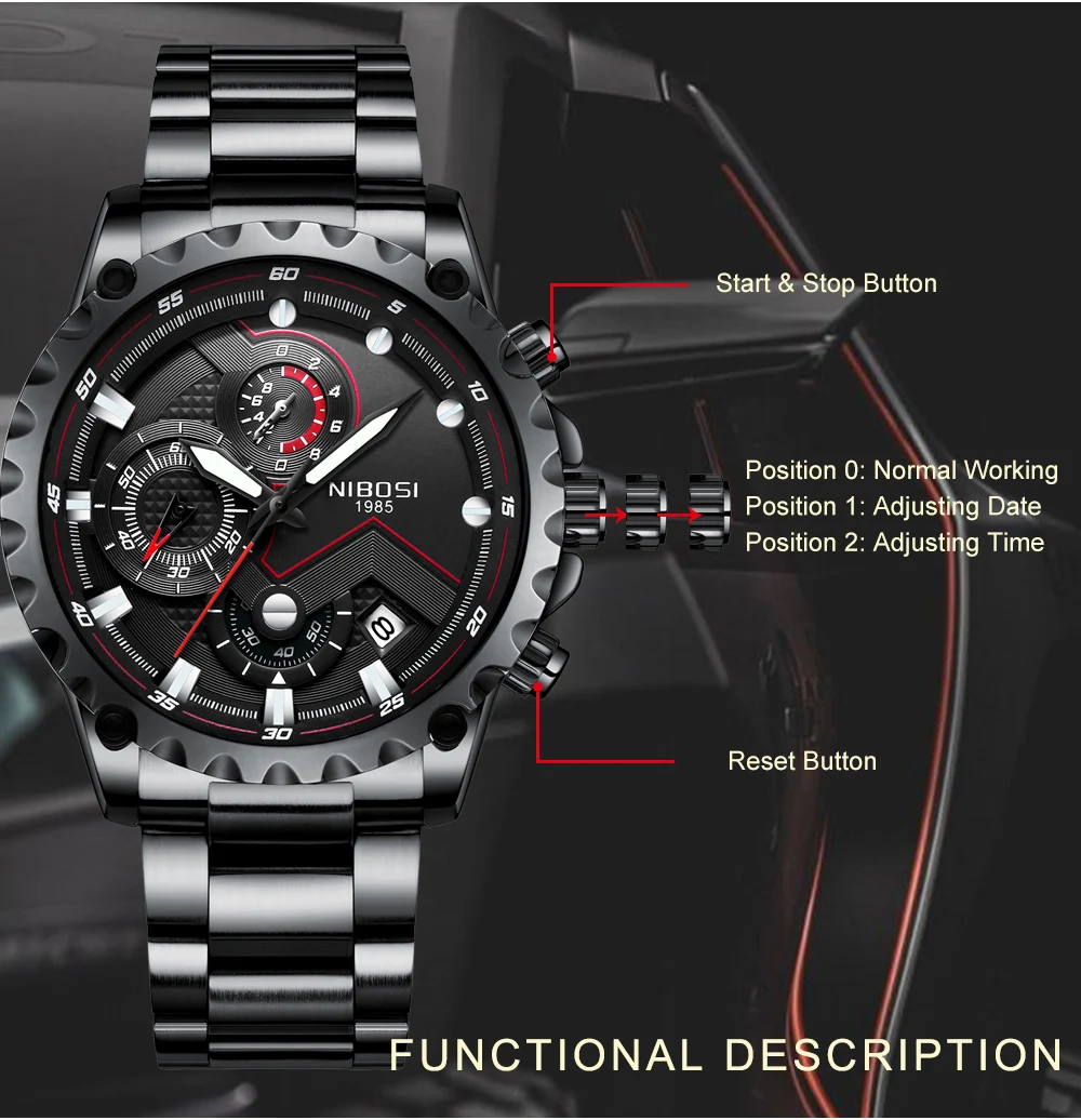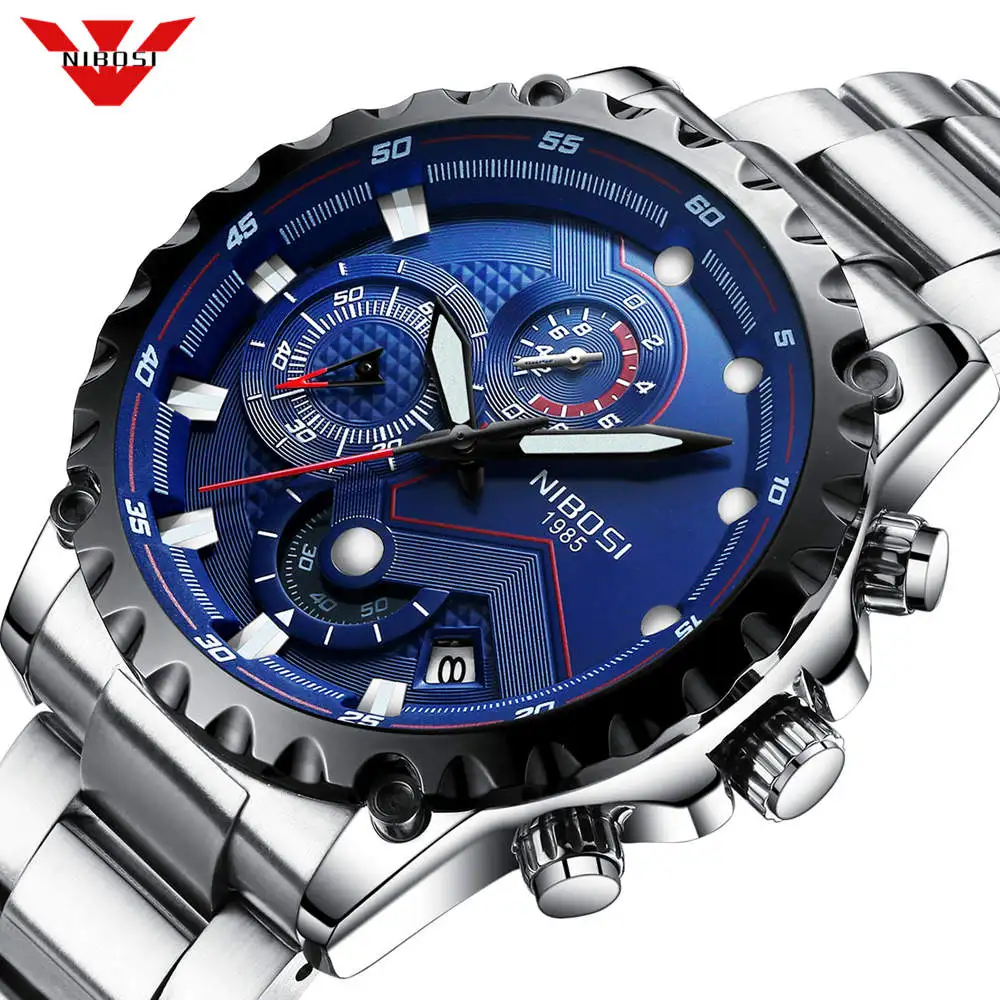 Часы наручные NIBOSI Мужские кварцевые, спортивные модные армейские в стиле милитари, с большим циферблатом