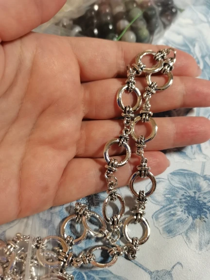Восхитительного качества цепочка, она сомкнута в круг, ее можно использовать как отдельными звеньями, как дополнительный элемент, так и целиком. Доставка в Казахстан 4 недели, продавца рекомендую. Буду брать еще.