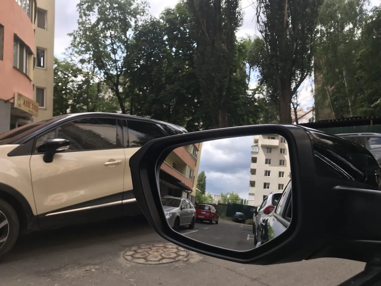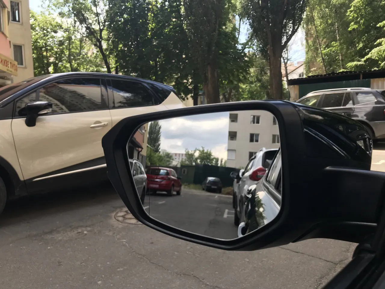 Хорошее зеркало, выглядит лучше оригинала, по краю чёрная окантовка. Уменьшает изображение, то есть отдаляет объекты