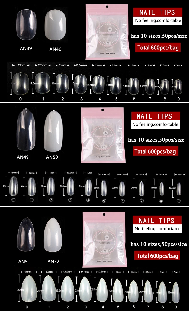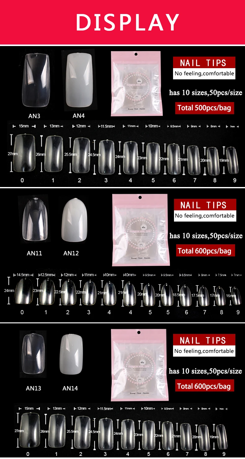 Различные размеры-500 шт. поддельных ногтей предлагает 10 различных размеров с 50 гвоздями каждого размера, которые подходят для большинства пальцев, которые индивидуально пронумерованы 0-9, поэтому их легко отслеживать, И удобно выбирать подходящий размер, который подходит каждому пальцу.