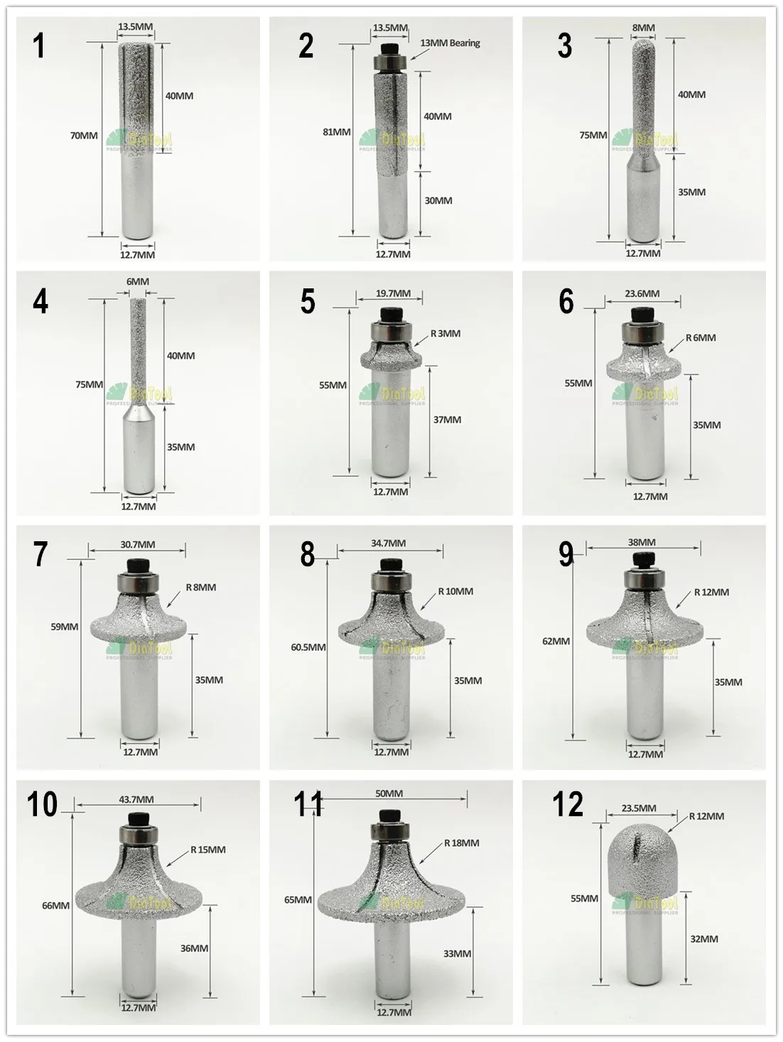 Алмазные фрезы SHDIATOOL, 1 шт., с хвостовиком 12 дюйма, с вакуумной пайкой, для камня, фрезы для гранита и мрамора