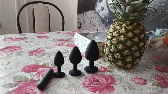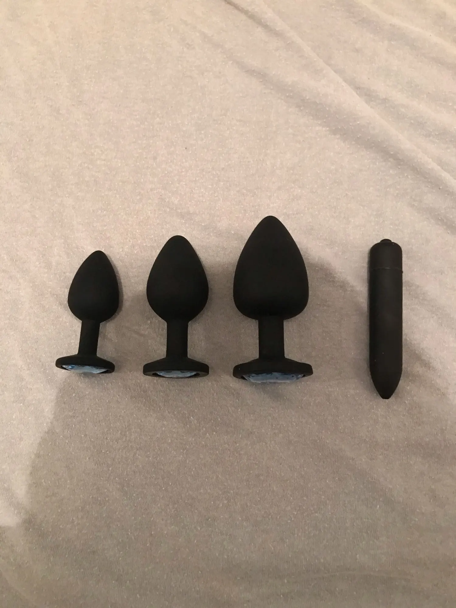Всем привет. Сегодня с почты забрала долгожданные пробочки. Всегда хотелось попробовать в попу, решила для начала подготовить её. Маленькая пробочка вошла легко, использовала много смазки. Вибратор прикольный, но мне не особо понравился. Покупкой очень довольна ❤️