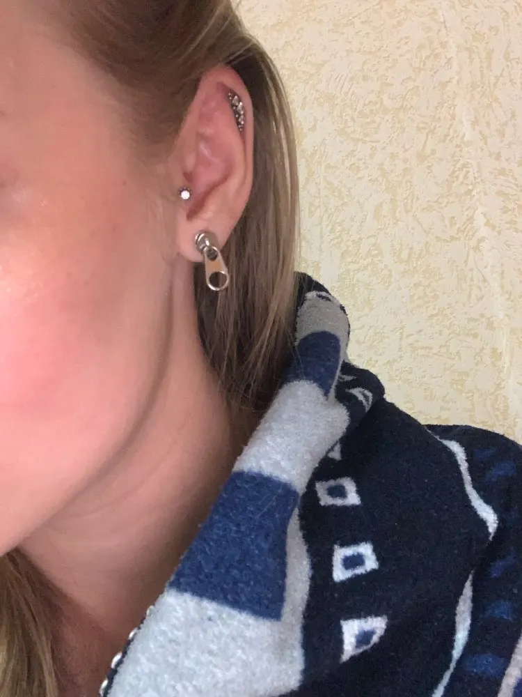 шло месяц, отслеживалось на моих ушах смотрится не идеально, мочку уха чуток загибает от веса серьги, на мой вкус в итоге смотрится не так стильно, как ожидалось