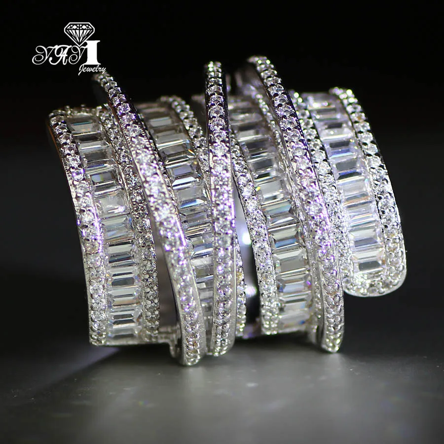 Ювелирные изделия YaYI модный сложный дизайн, огранка принцессы, 260 шт. + AAAAA, белый циркон, серебряный цвет, Обручальные, свадебные, Подарочные Кольца