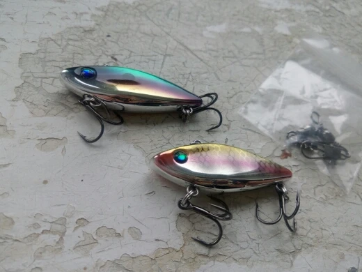 Прикольные вибы.Крючки острые,внутри погремушка.Не отслеживались.