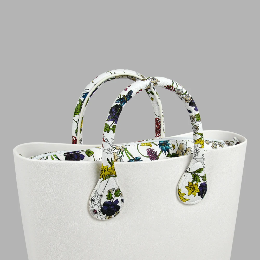 1 пара, короткая длинная ручка из искусственной кожи с цветочным принтом