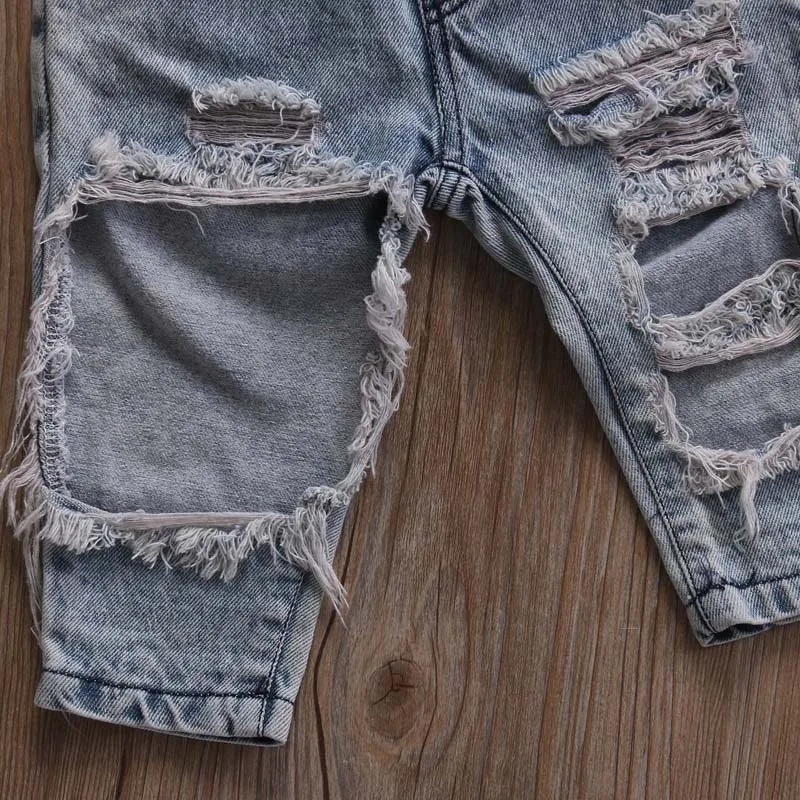 3 шт., детский топ в горошек без рукавов + джинсы с отверстиями + п...