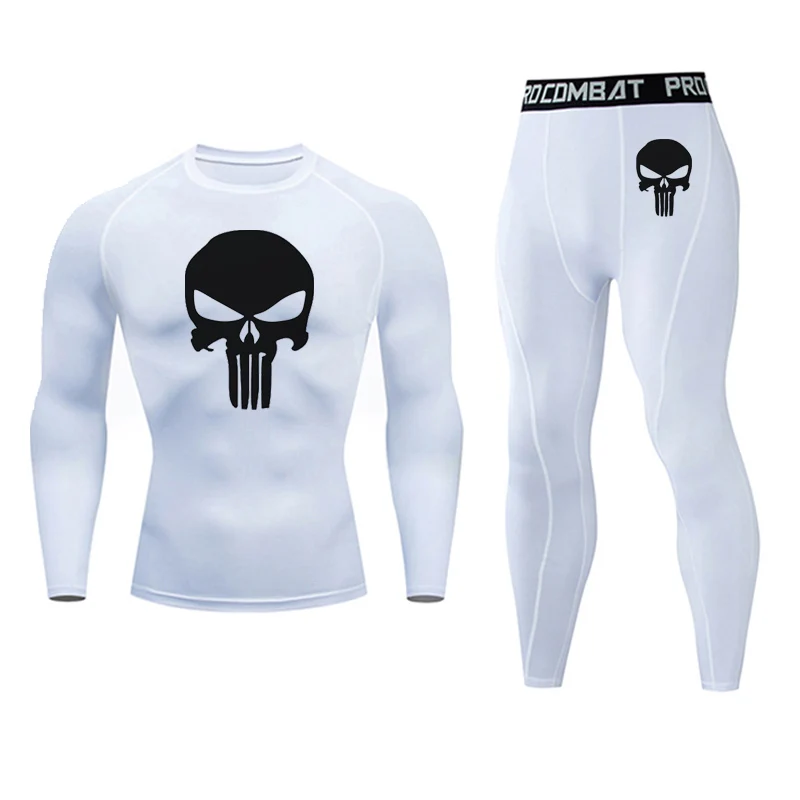 Бренд мужской костюм Спортивные Компрессионные колготки череп MMA тактика нижнее белье Рашгард Мужской Быстросохнущий Спортивный костюм для бега мужская одежда