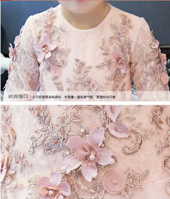Розовое, солнечное, детское платье для выпускного вечера, с длинным рукавом, длиной до щиколотки, вечернее платье принцессы для девочек, детское платье для праздника