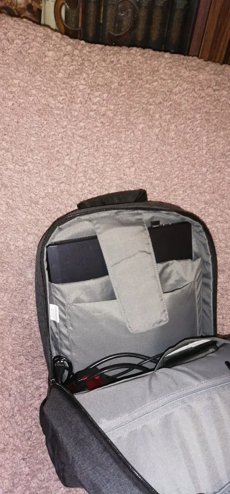 Рюкзак крутой, зарядка работает, только небольшого обьема. Но мужу на работу под обед и компьютер самое оно)