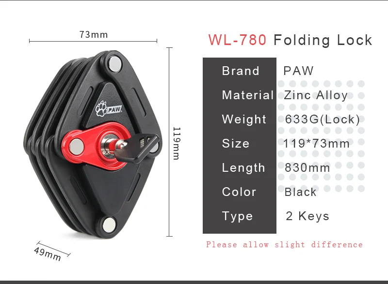 Складной велосипедный замок, 2 ключа, усиленная защита, Противоугонный велосипедный замок, сверхпрочный цепной трос, мотоциклетный замок