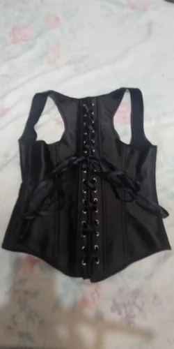 Привлекательный черный атласный жилет на шнуровке с косточками из стали, Приталенный жилет с корсет на ремнях подгрудником, формирователь размера плюс