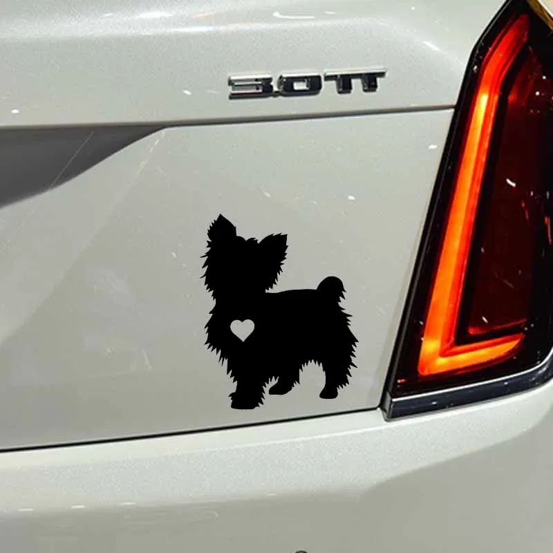 YJZT 10 см * 12,6 см Йоркширский терьер сердце силуэт автомобиля Наклейка украшение собаки черныйсеребристый C2-3127