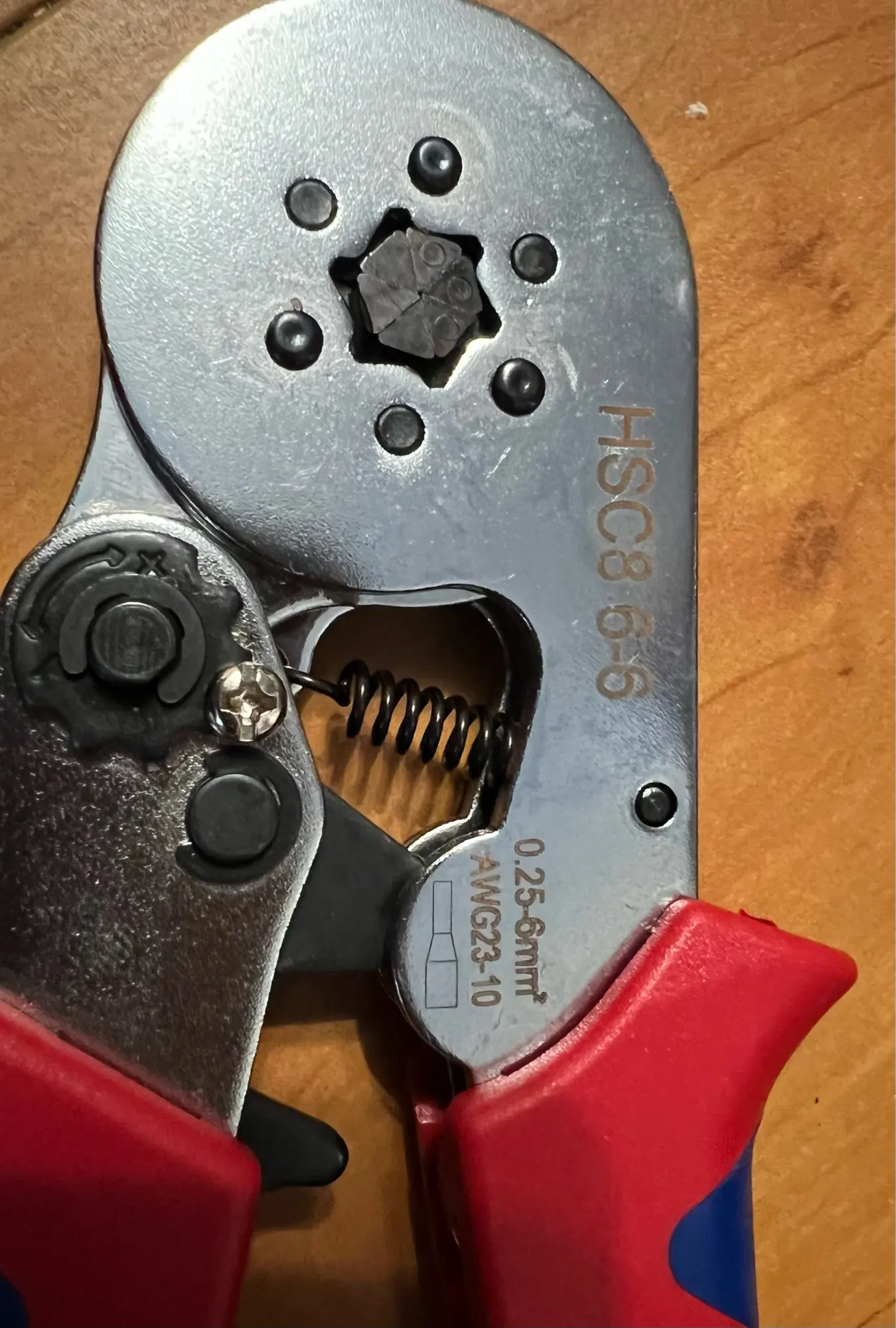 Типовые клещи. Храповый механизм исправный. Заявлен обжим 0,25-10мм². Есть винт регулирования силы обжима. Со временем требуется подстройка. Предыдущий экземпляр отслужил пару лет в КИПиА. Курьер привёз до двери