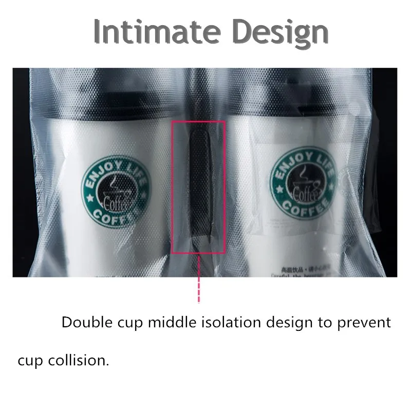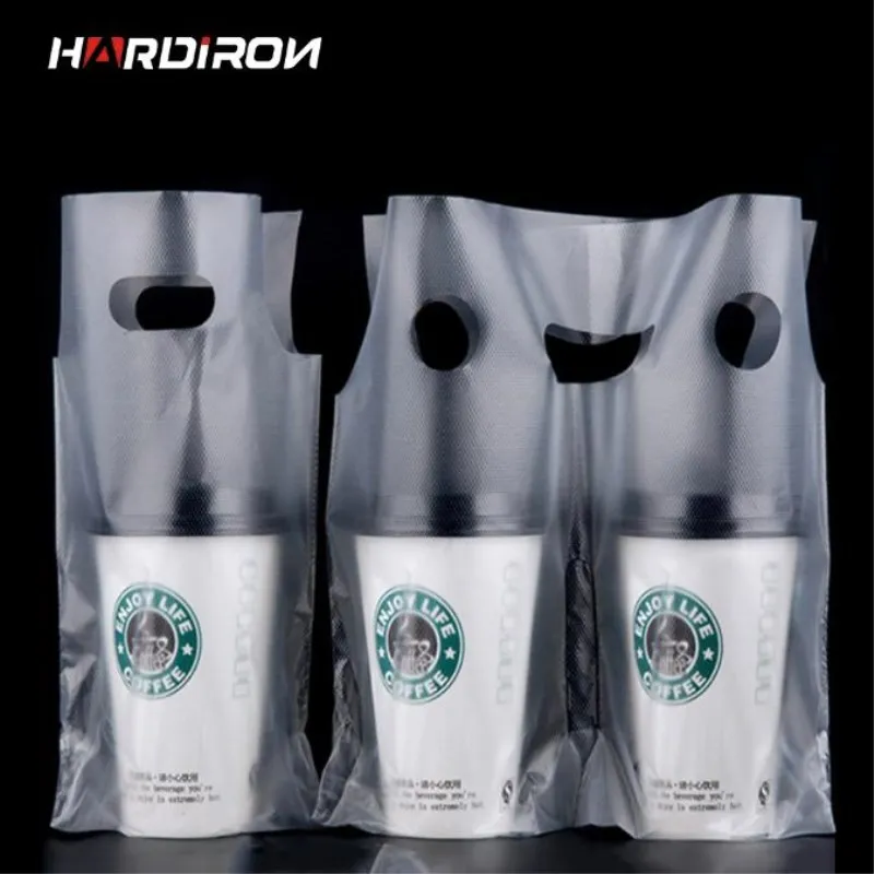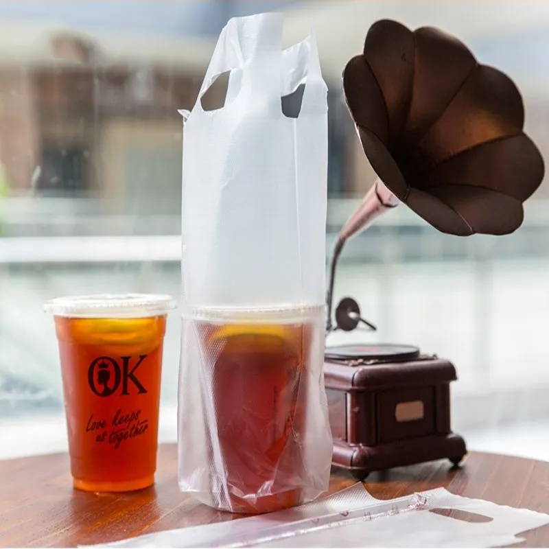 Прозрачные пакеты с ручкой для сока, кофейная сумка, белая прозрачная упаковочная сумка, пластиковые пакеты с одной и двумя чашками, пакет для чайных напитков