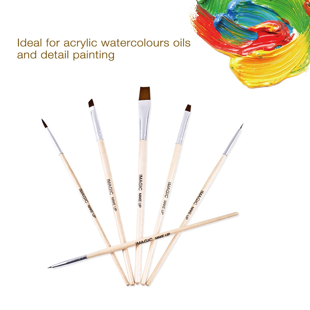 Ручка для рисования вручную, набор кистей для макияжа, нейлоновая кисть с деревянной ручкой, 6 шт.