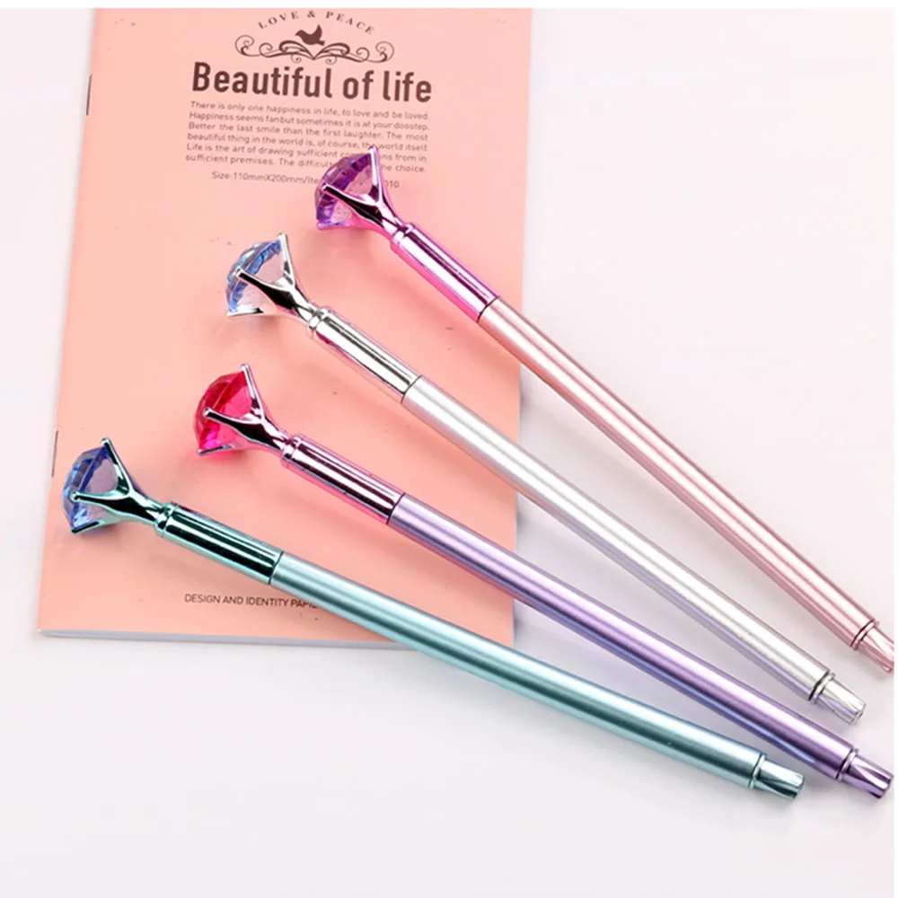 Металлическая шариковая ручка с крупным драгоценным камнем, 4 цвета, со стразами, волшебная ручка, школьные и офисные принадлежности, подарок для студентов, награда