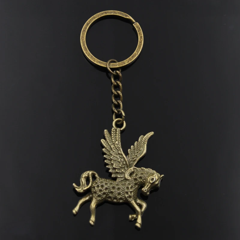 Новая мода брелок 52x42 мм Fly Лошадь Единорог Бронзовые Подвески из серебра DIY для мужчин ювелирные изделия, автомобильные брелки с кольцом и держатель для подарка