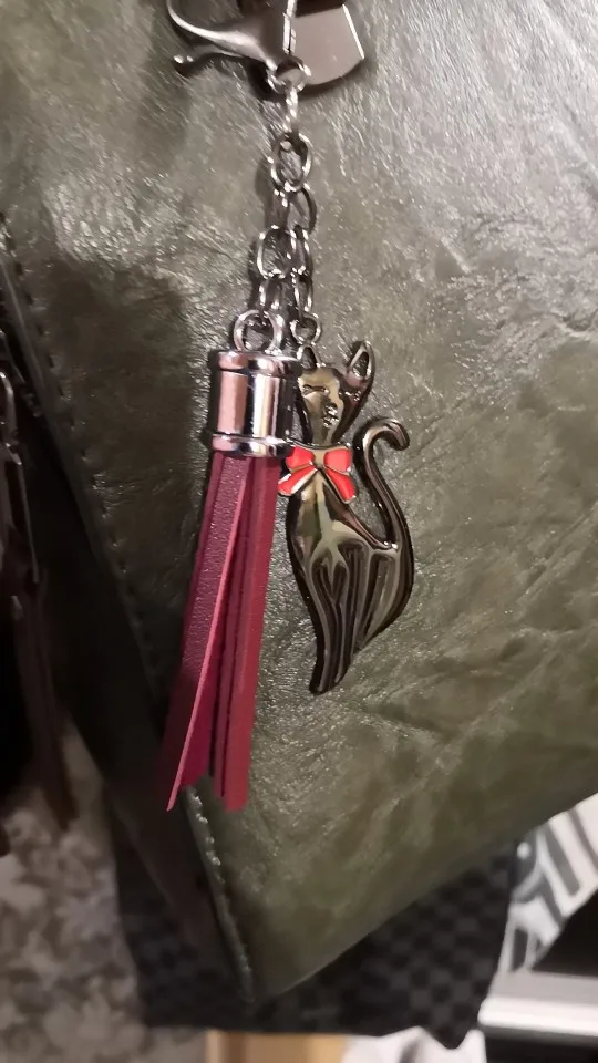 очень хорошая сумка. точно такая, как на картинке. думала будет немножко больше, но все вмещается. кошка с кисточкой на карабине, отстёгивается. посылка пришла с воздушными пакетами внутри, сумка не помчалась. я очень довольна.