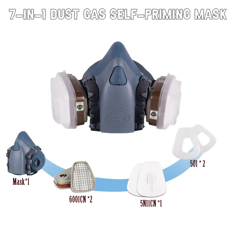 Полулицевая маска 7 в 1 7502, респиратор от пыли и химических веществ, двойной фильтр для распыления, покраски, безопасный органический пар