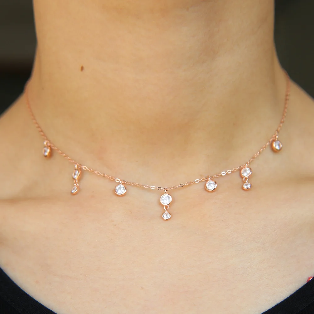 Чокер в форме слезы из стерлингового серебра 2021 пробы с круглым кубическим цирконием, элегантная цепочка-кисточка, подарок на свадьбу, Женское Ожерелье