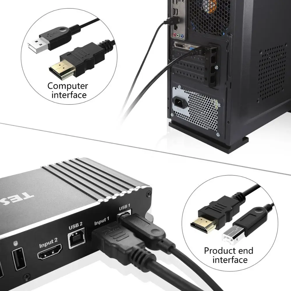 2 шт. Новинка Высокое качество 1,5 м HDMI USB KVM кабель HDMI + USB KVM кабельный коммутатор KVM выделенный 4 k @ 60Hz 18 Gbp