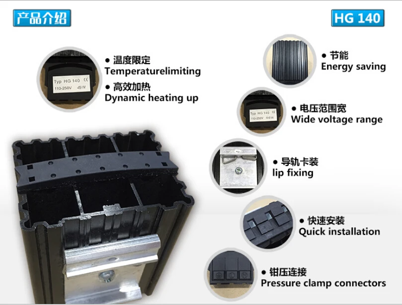 Промышленный Шкаф HG140 с вентиляторным нагревателем типа Din 35 мм 15 Вт 100 Вт PTC Sermiconductor