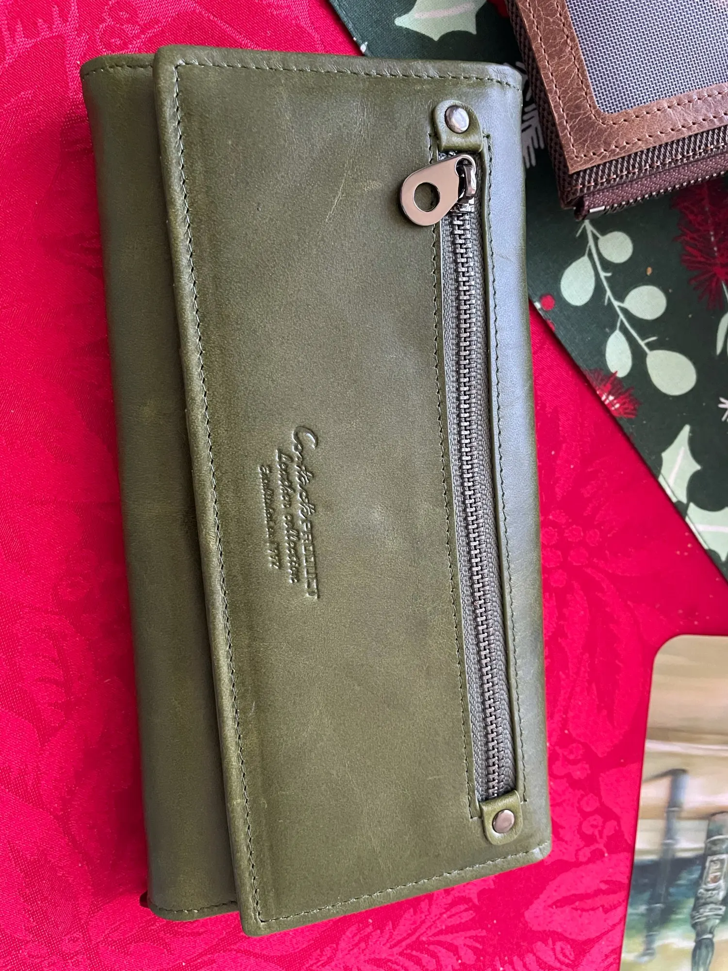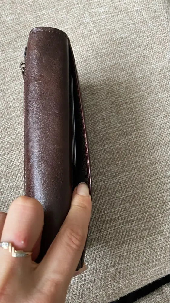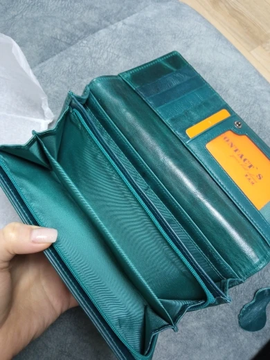 Кошелёк был хорошо упакован. Выглядит тоже хорошо. Правда я думала, что будет мягкая кожа. В действительности - материал гладкий (не уверена что кожа). Вместительный, очень много слотов для карт. Для купюр есть один карман, для монет - двойной карман на молнии