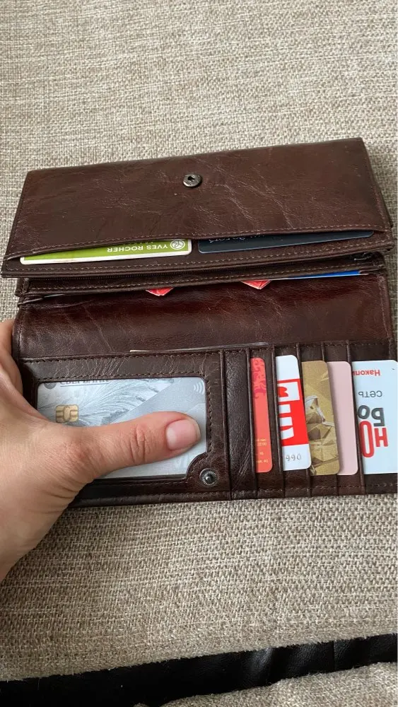 Контакта из натуральной кожи Для женщин Длинный кошелек женский муфты деньги кошельки бренд Дизайн Сумочка для сотового телефона держатель для карт кошелек