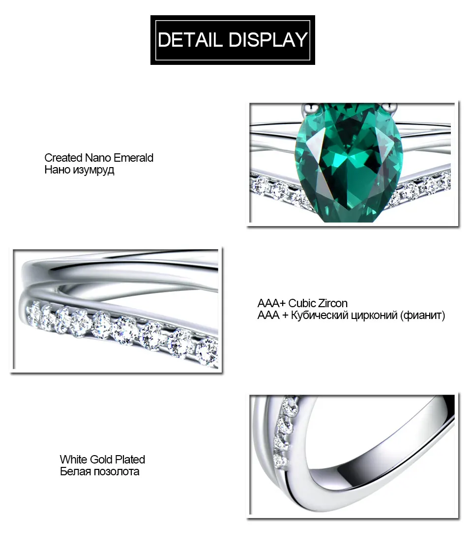 UMCHO зелёный Изумрудный камень, кольца для женщин, Стерлинговое Серебро 925 пробы, ювелирное изделие, романтическое классическое кольцо с каплями воды, подарок на день Святого Валентина