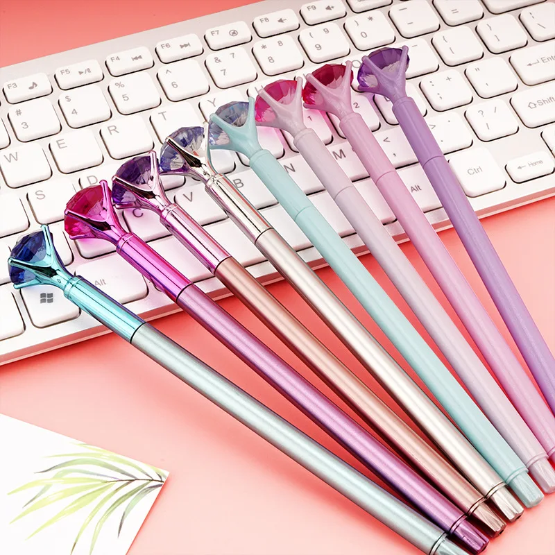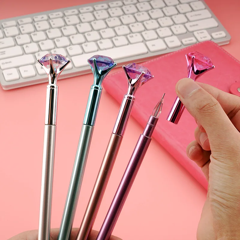 1 шт., большая шариковая ручка с искусственным драгоценным камнем, кольцо, свадебная металлическая шариковая ручка, кавайная волшебная ручка, модные школьные и офисные принадлежности