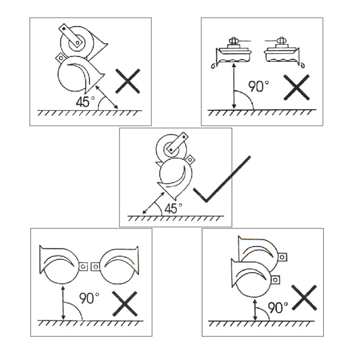 F. Требования к неполярности для этого продукта, соединенное место провода должно быть достаточно твердым, двойной рог должен быть установлен на твердой части кузова автомобиля параллельно.