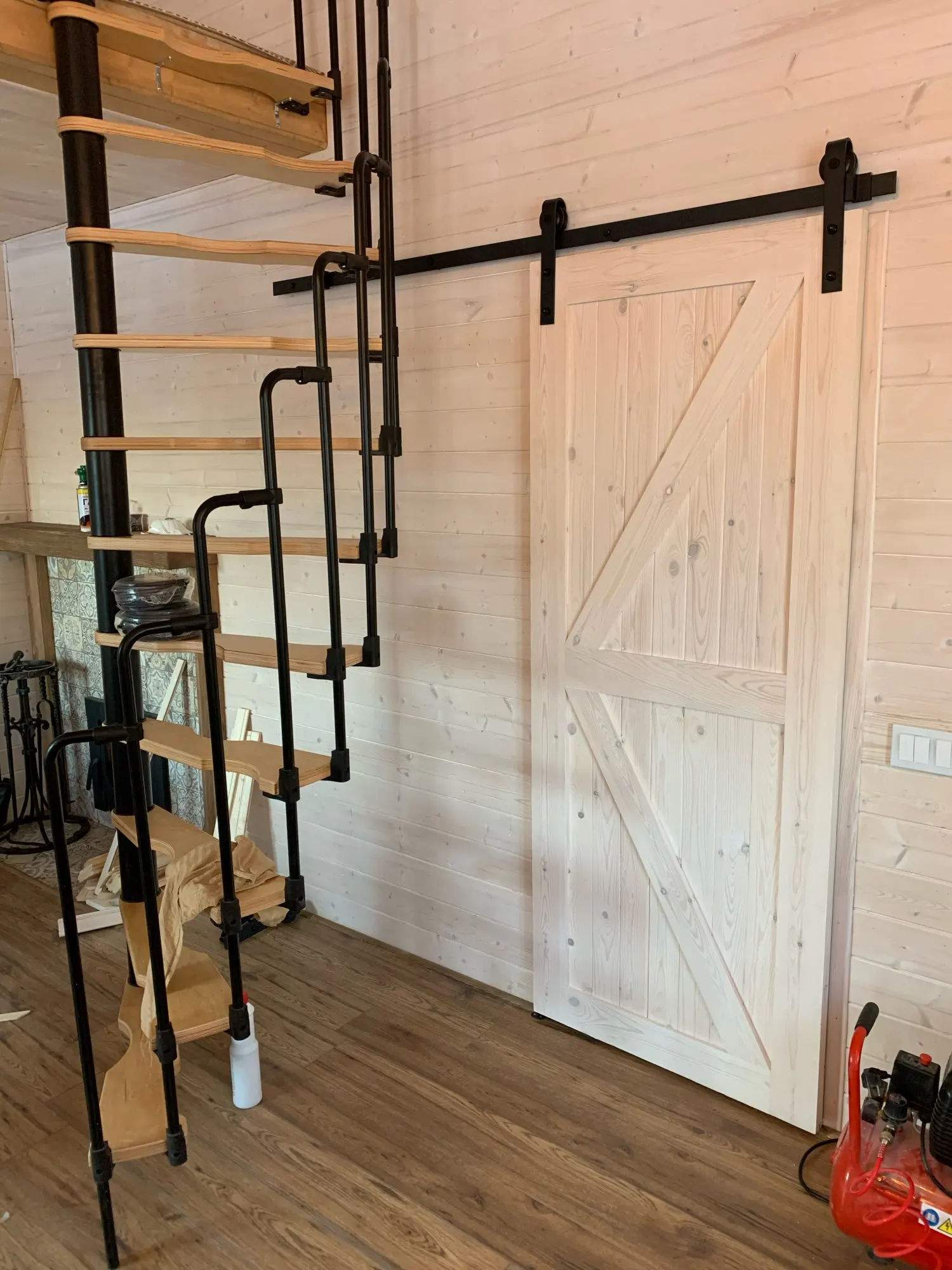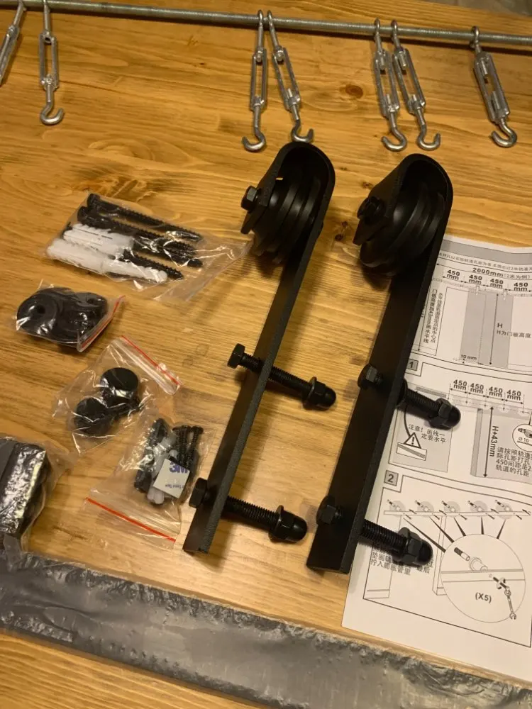 Немного другая нижняя направляющая. Да и в целом надо будет что то думать с этим вопросом, так как направляющая в комплекте мне не нравится, будет царапать дверь. Ещё если у вас будет обналичник, то шайбы с внутренней стороны тоже будут царапать. Короче, надо подколхозить ещё. Визуально все супер. Претензий нет. Привёз курьер через 5 дней.