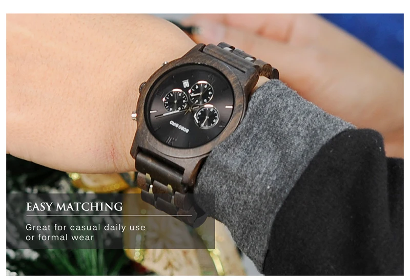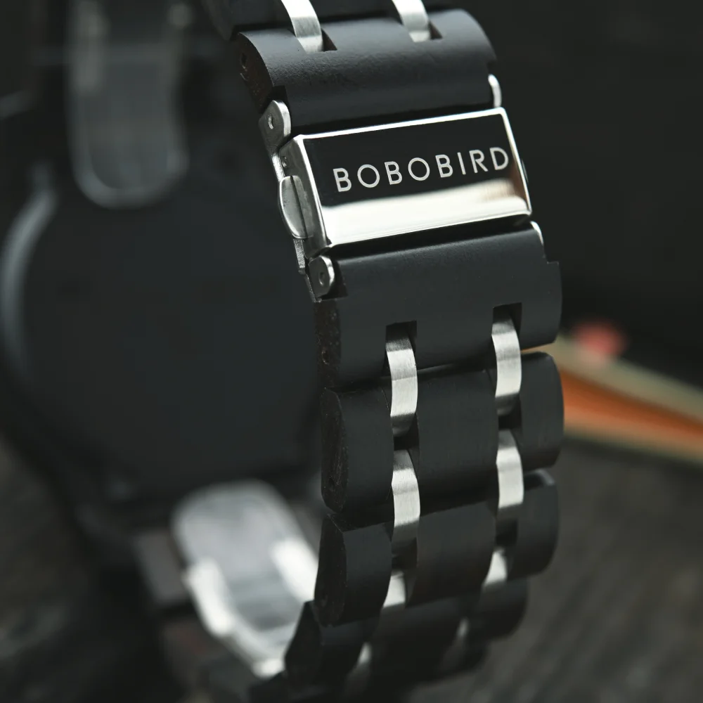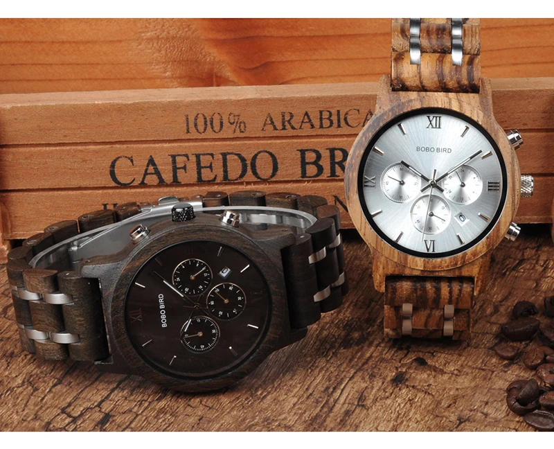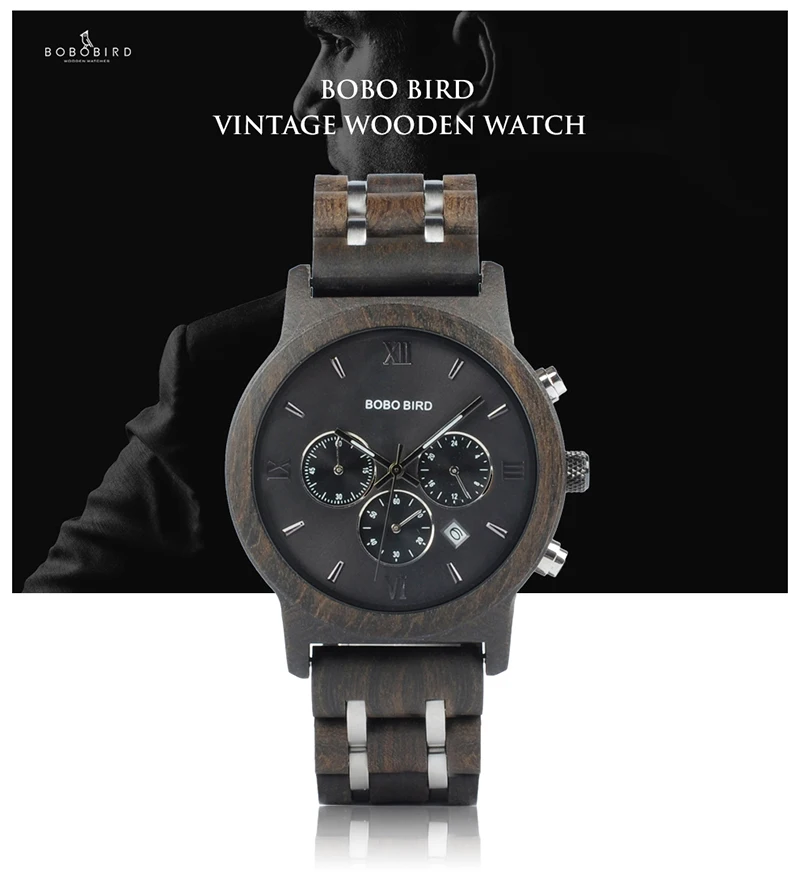 BOBO BIRD деревянные часы для мужчин, модные деловые кварцевые часы из дерева и нержавеющей стали с хронографом, отличная подарочная коробка