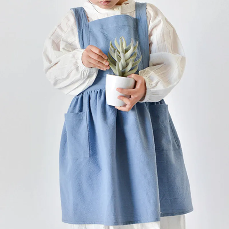 Детский синий розовый серый хлопковый льняной нагрудник с удобными карманами.Подходит для школы или семейных занятий, таких как выпечка, готовка, живопись, садоводство, барбекю и т. д.