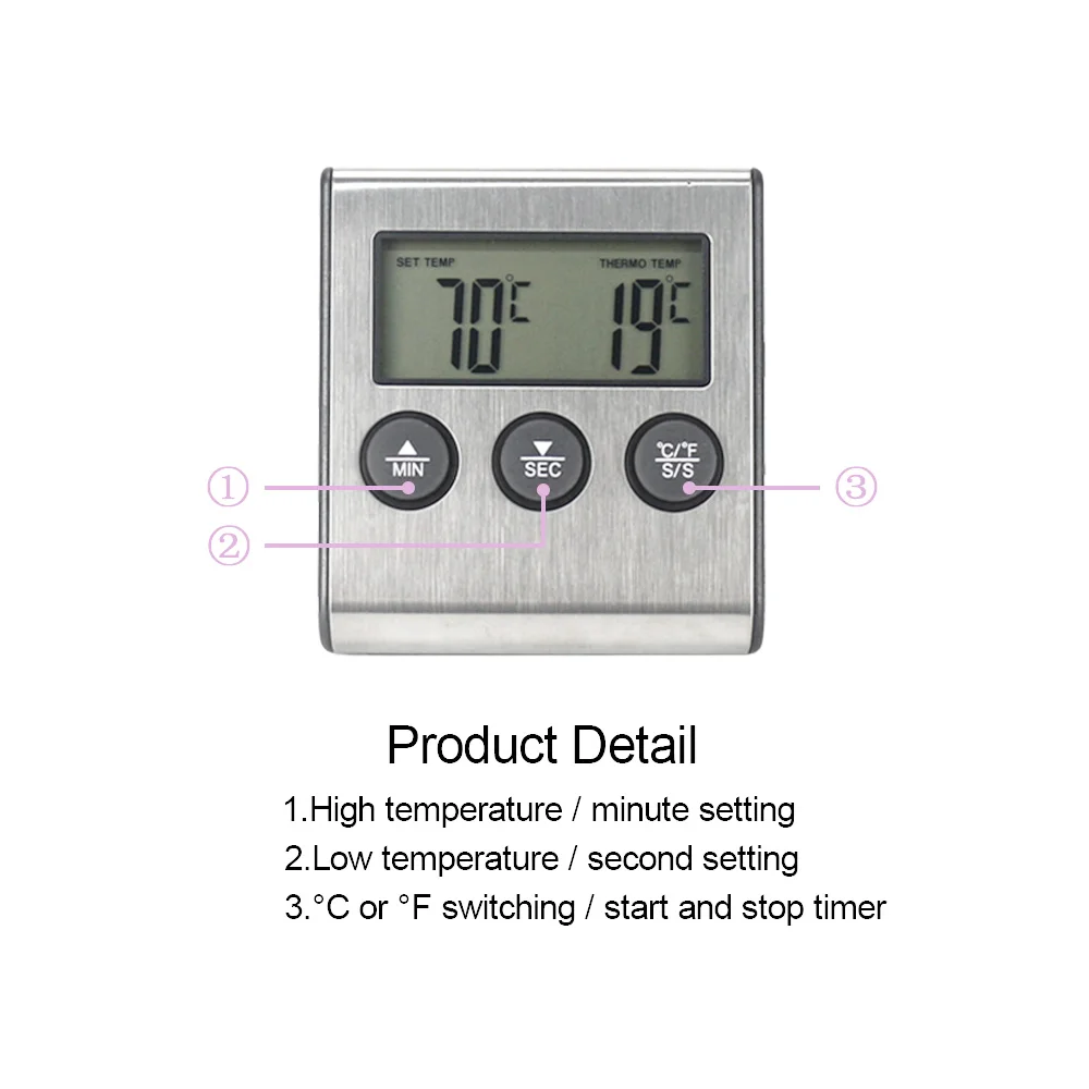 Цифровой термометр для приготовления пищи, барбекю, пекаря, измеритель температуры 0-250C с датчиком температуры, часами, таймером, функцией будильника