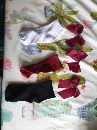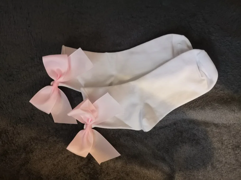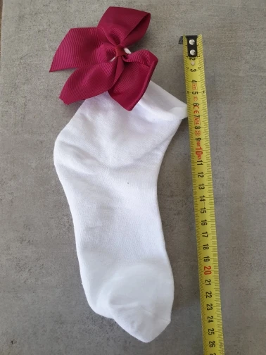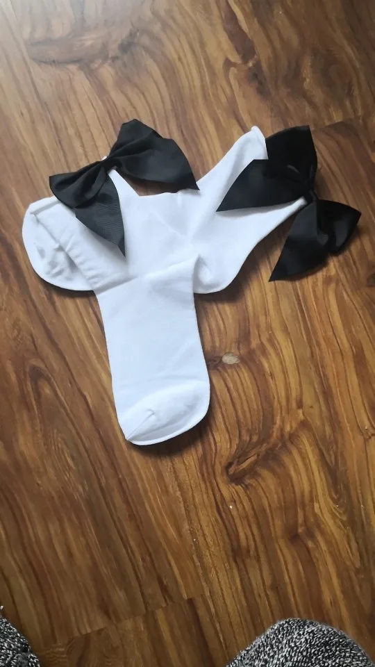 Милые носки, заказ пришел очень быстро. не обработан верх носков, думаю, что быстро растянется. Бант выглядит красиво. с кедами будет очень классно смотреться.