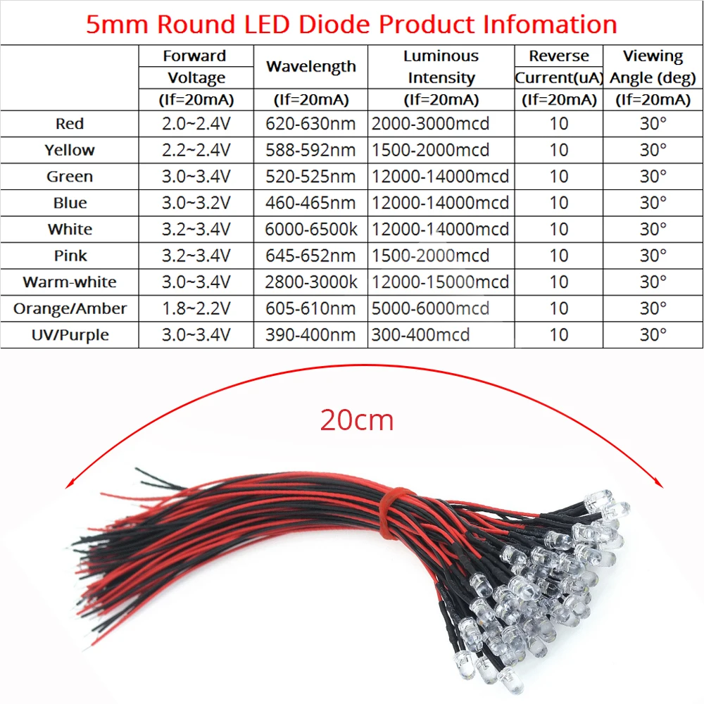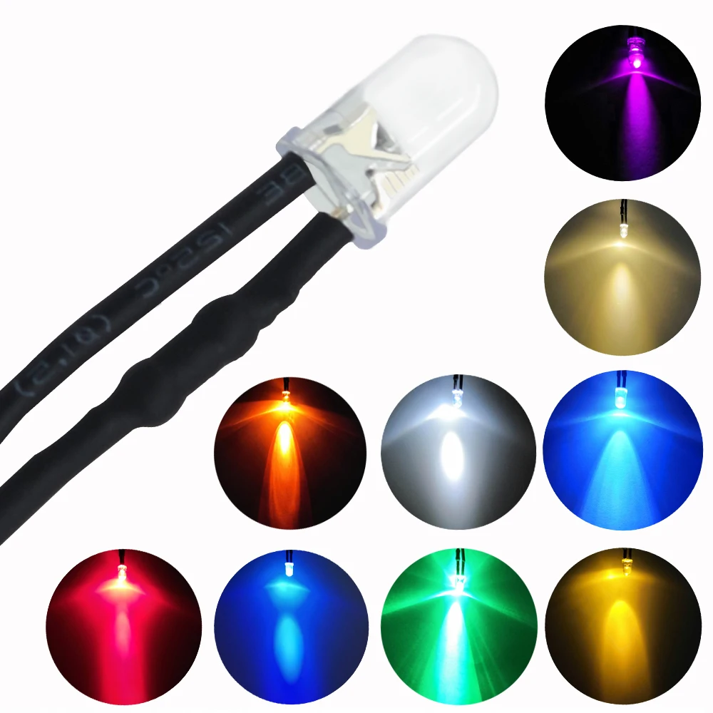 5X F5 5 мм круглый 20 см Предварительно подключенный DC 12 В светодиодный светильник лампа белый красный синий зеленый желтый белый теплый белый диод излучающие диоды светодиоды